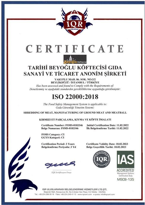 Tarihi Beyoğlu Köftecisi olarak müşteri sağlığı ve memnuniyetini önemsiyoruz.